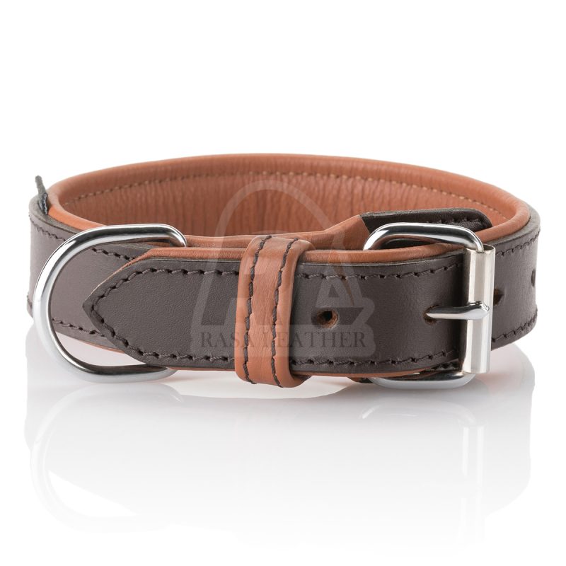 Soft Leather Dog Collar with Buckle Protection Detroit Brown/Orange Brown, 30-38cm, 3.2cm