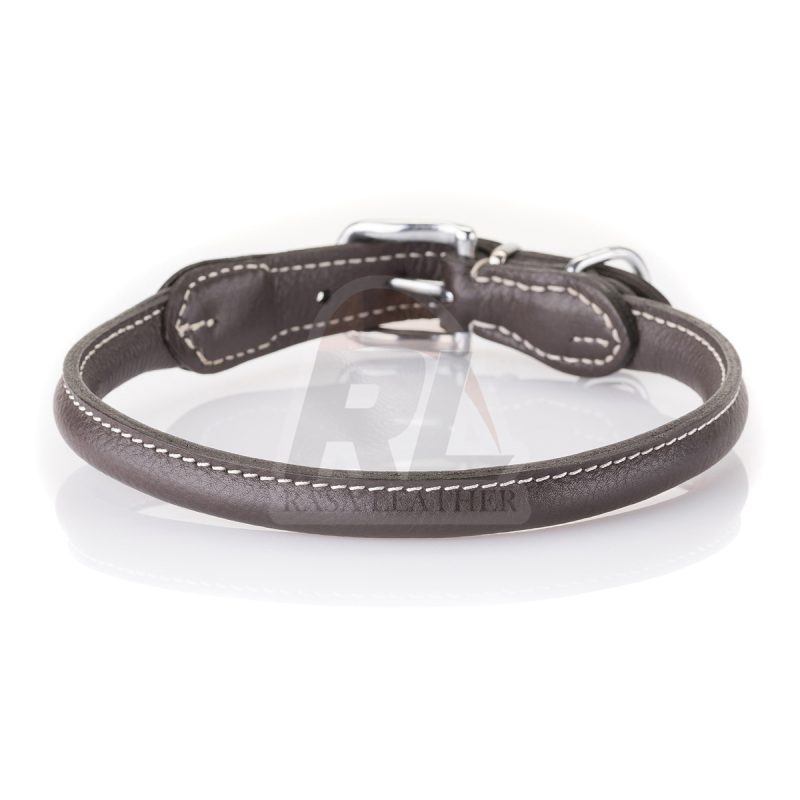 Soft Leather Round Dog Collar Hoopa Brown, 38-42cm, 8mm