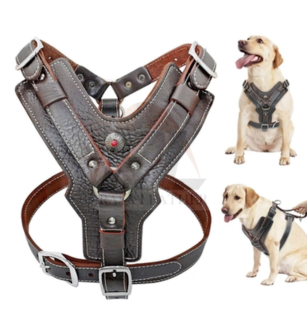 Didog Leather Large Dog Harness Heavy Duty Vest Thick Soft for Big Medium Breed Dogs Brown