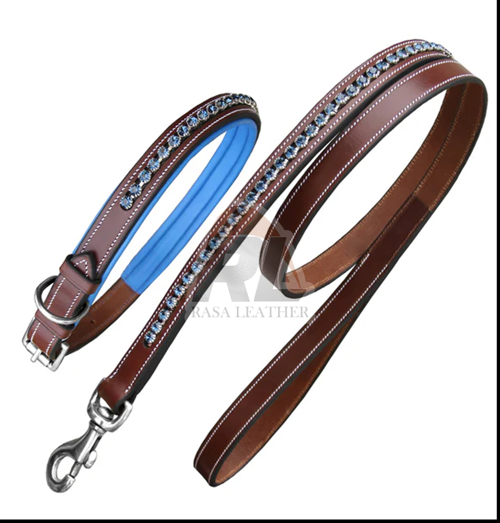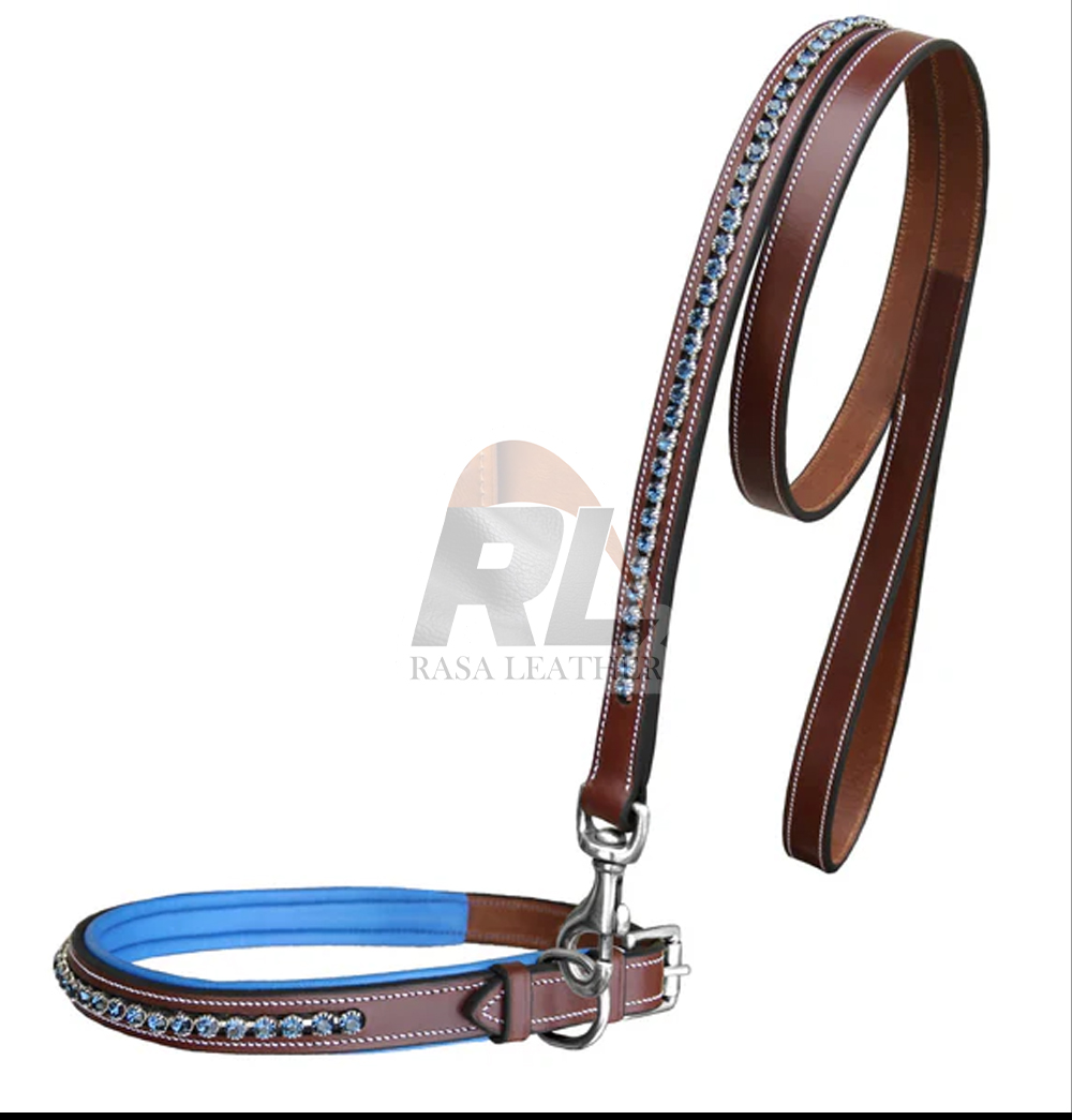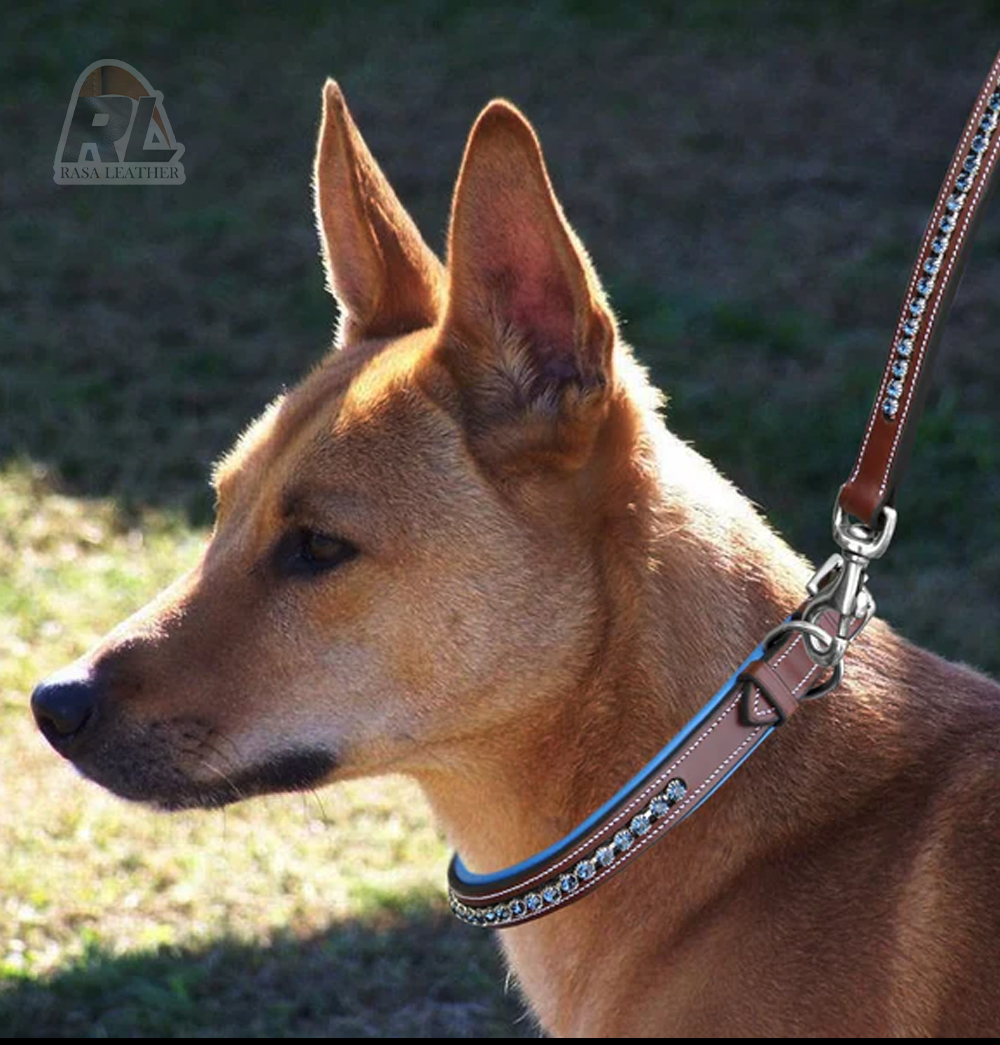 ExionPro Dark Blue Bling Dog Collar With Leash