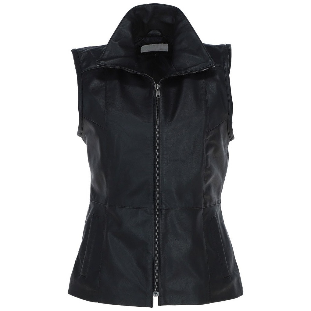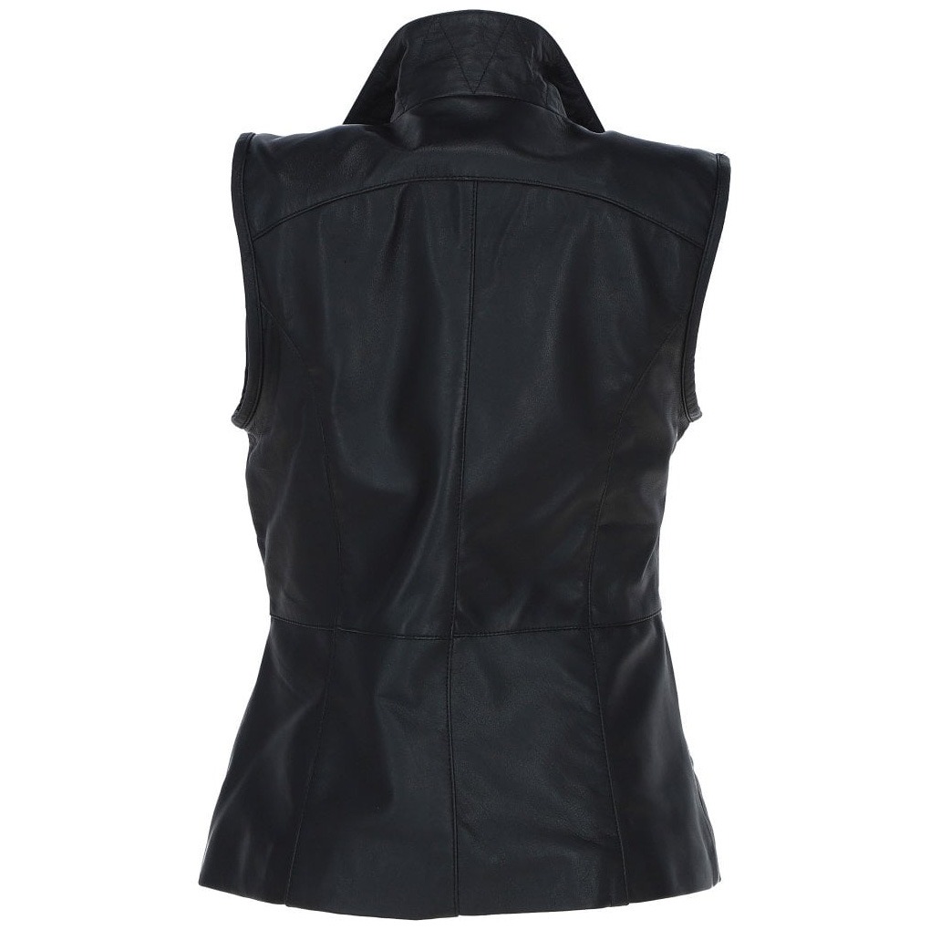 Women Regular Fit Black Leather Vest